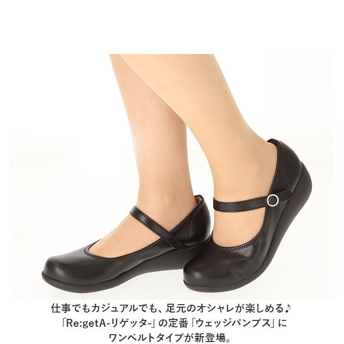 ・仕事でもカジュアルでも、足元のオシャレが楽しめる♪「Re:getA-リゲッタ-」の定番「ウェッジパンプス」にワンベルトタイプが新登場。