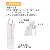 ・ヘッドレストステーに長さ調節できるベルトを通し、フックで固定するだけ!