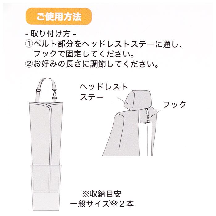 ・収納部分は面ファスナーで出し入れしやすく、一般的な長傘なら2本入るサイズ感。(※サイズによっては入らない場合もあります。)