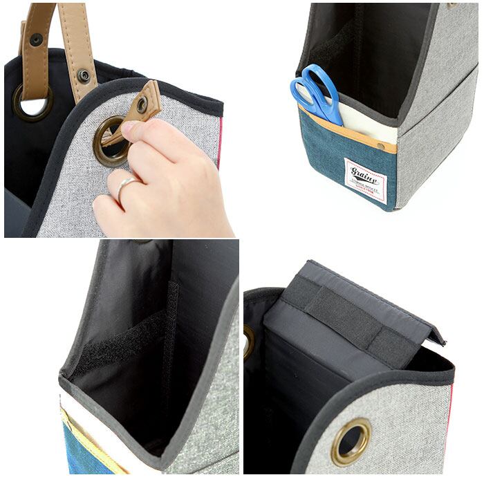 ・前面と側面の左右それぞれに1個ずつポケットが付いているから、カード等なくなりがちな小物の収納に便利。