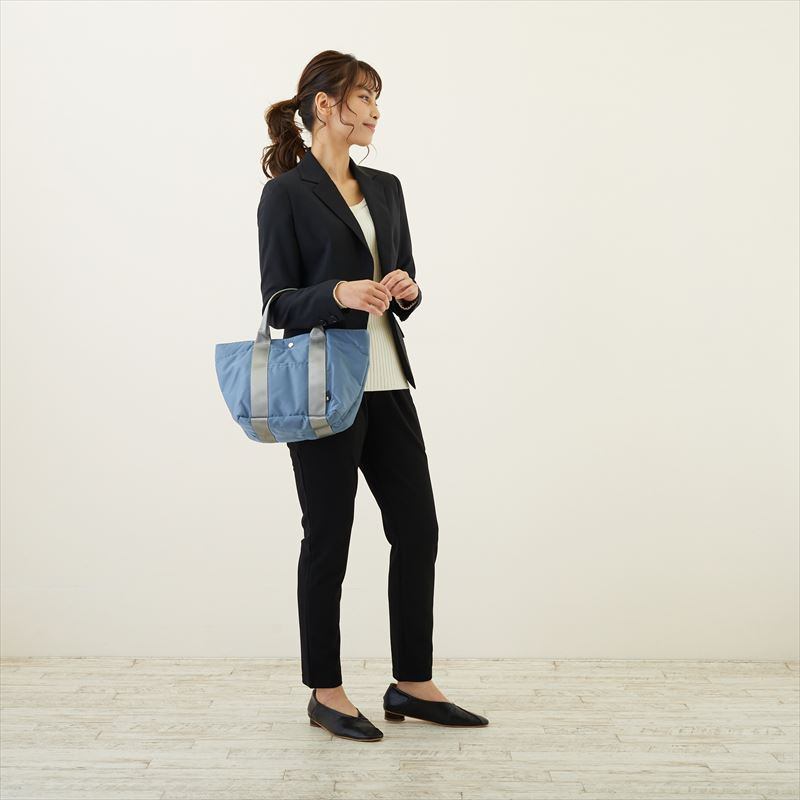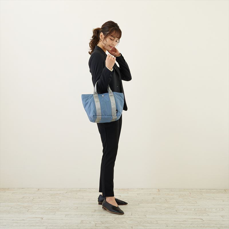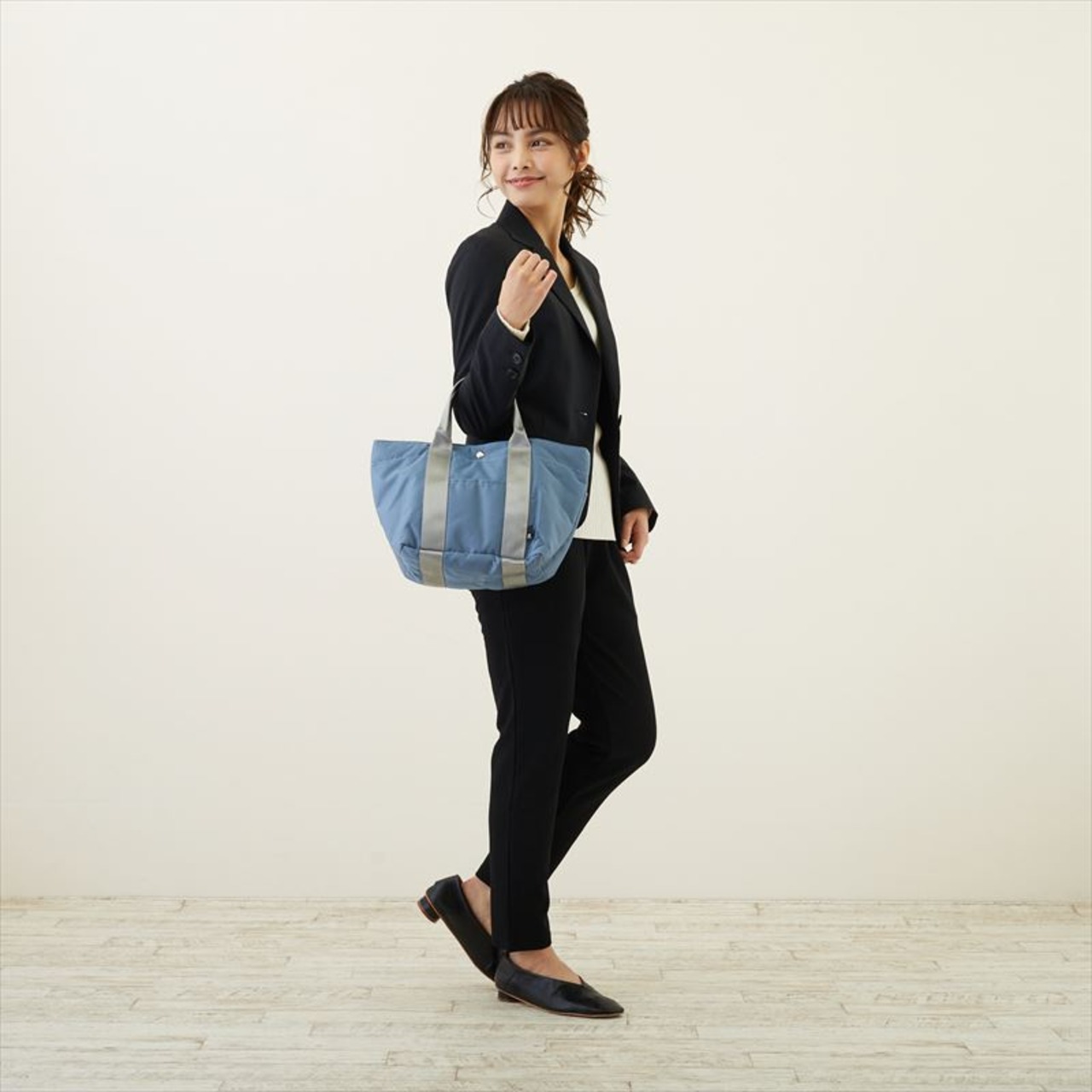 ・モノの出し入れがしやすく、中身もパッと確認できます。ふんわり軽いく体に寄り添うやわらかさがありながら、自立するシルエット。