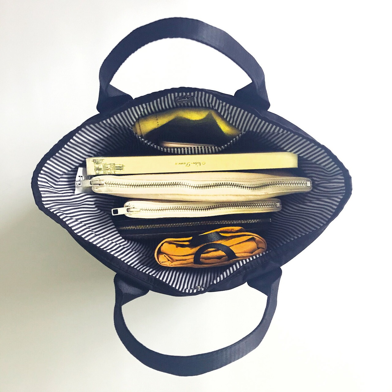 ・メインルームは底マチが広く、ランチボックスなども入ります。ボトル、A5ノート、大き目ポーチなど収納力抜群!