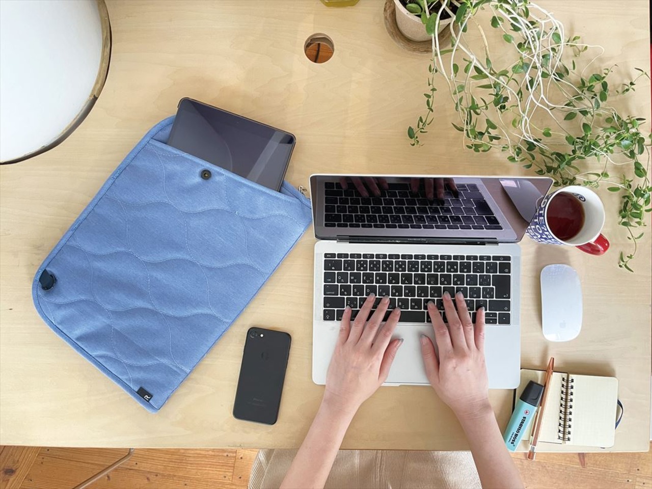 ・ノート型PC用トート「ピモッテ」。ワークスタイルが多様化している今、モバイル機器の携帯は欠かせません。シーンに応じてバッグのインナーにも、そのまま持ち歩けるトートにも…。