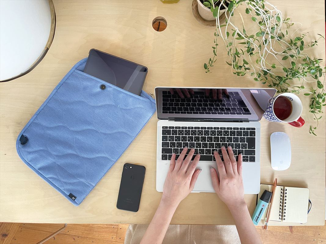 ・汚れに強く超軽量はっ水素材。ベーシックカラーに、ちらりと見えるストライプ柄の裏地が程よいアクセントに!適度なクッション性と持ち運びやすさ。デバイスをしっかりと保護しながら、かさばりにくい。薄型&軽量。ビジネスバッグや通勤カバンのインナーバッグとしても大活躍。