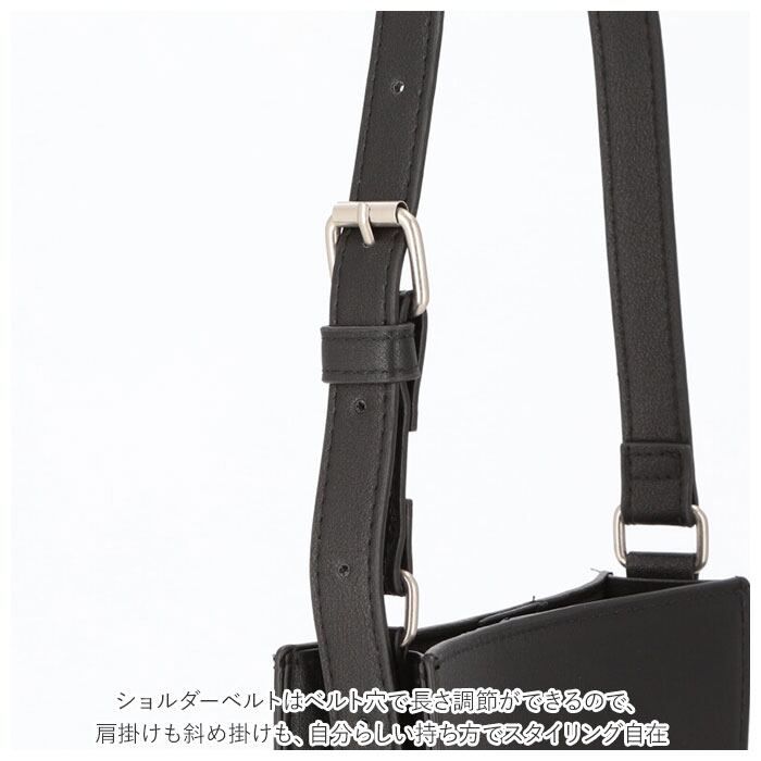 ・ショルダーベルトはベルト穴で長さ調節ができるので、肩掛けも斜め掛けも、自分らしい持ち方でスタイリング自在。