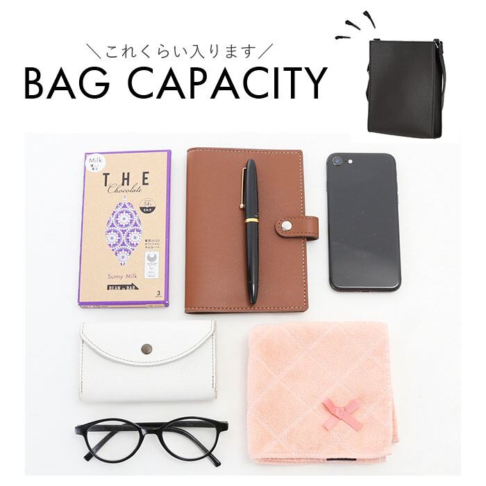 ・スマートフォンや長財布、ちょっとした化粧小物など、お出掛けに必要な最低限の小物が入る、ミニマム派女子に嬉しいサイズ感。