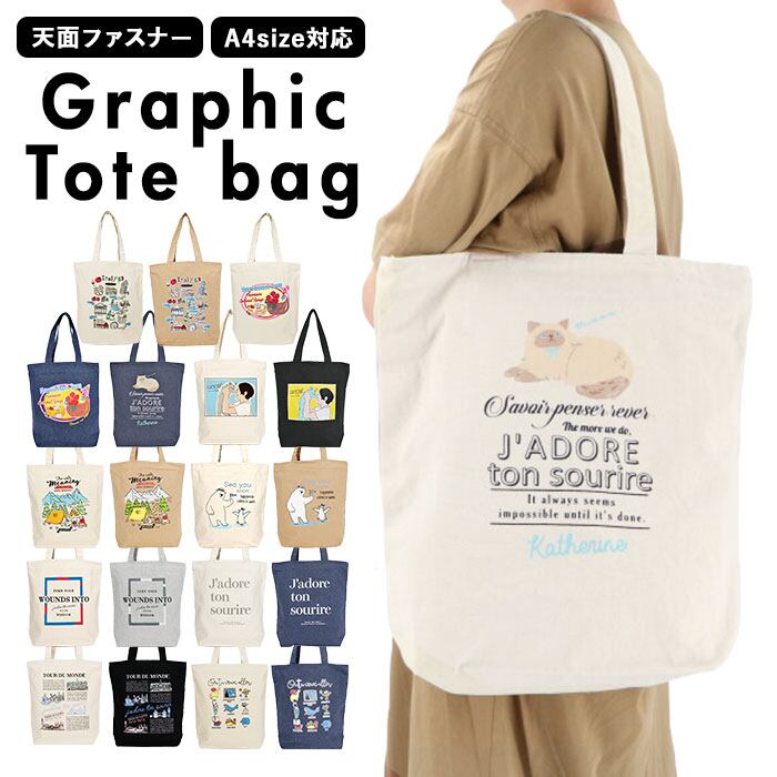 トートバッグ キャンバス 通販 レディース ファスナー a4 縦 肩掛け レッスンバッグ サブバッグ エコバッグ 通学 帆布 習い事 可愛い バッグ かわいい グラフィックトート おしゃれ