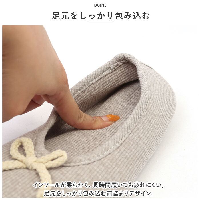 ・柔らかくて軽量な履き心地がクセになりそう♪リボンがアクセントのかかと付きルームシューズ。