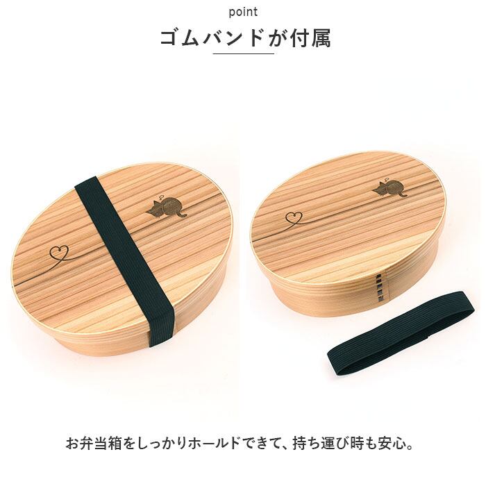 ・天然木の素地を使用しており、木の調湿作用でご飯がベチャつかない!通気性が良く、梅雨の時期や夏場でもお弁当が傷みにくいのがポイント。