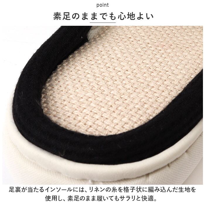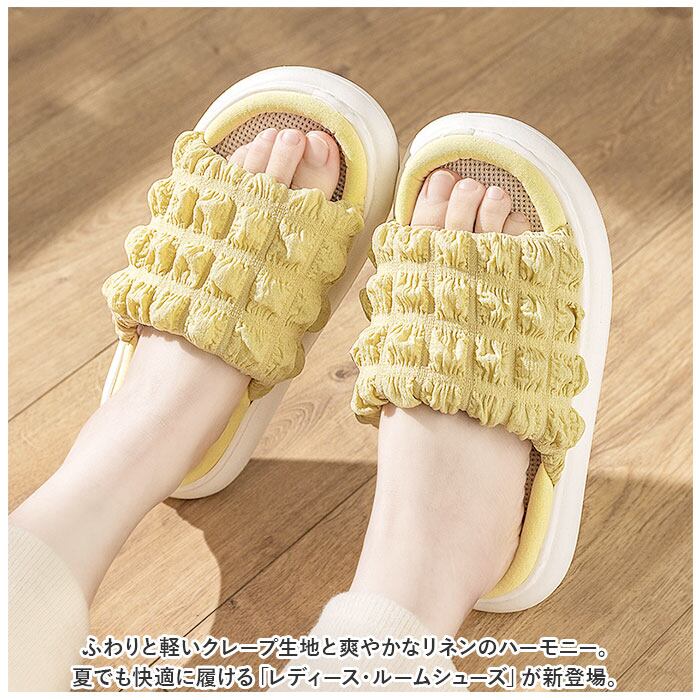 ・ふわりと軽いクレープ生地と爽やかなリネンのハーモニー。夏でも快適に履ける「レディース・ルームシューズ」が新登場。