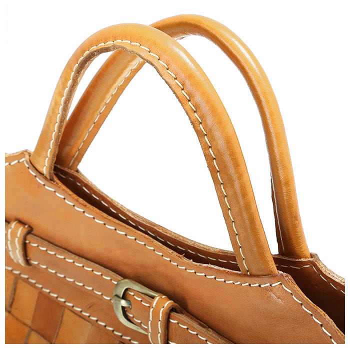 ・1枚ずつ手で染めては天日で乾かすなどの工程を何度も繰り返して仕上げた、カウレザーをメッシュ状にし一本一本職人が手編みにて作り上げ、使う程に味わいが深まるナチュラルな雰囲気のシリーズ。