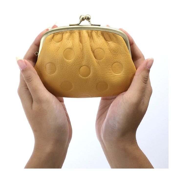 ・人気の【Klara】シリーズの使い勝手の良いドット柄がま口小銭入れ。