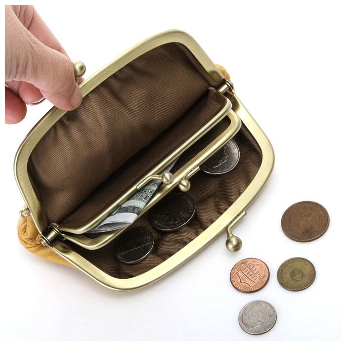・コロンとした可愛らしいフォルムにゴールドのがま口が上品さをプラス。