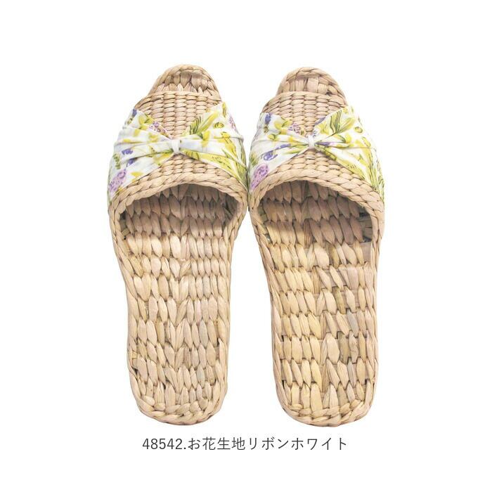 スリッパ おしゃれ 通販 サンダル ベランダサンダル 夏用スリッパ ルームスリッパ 室内履き サマースリッパ レディース ガマスリッパ お花モチーフ フリーサイズ かわいい 前あき 来客用 涼しい ガマ草