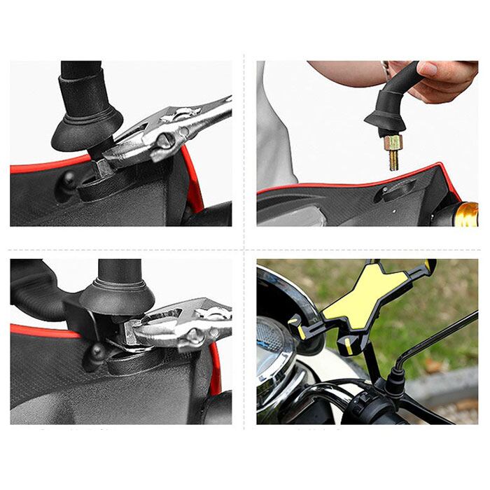 ・4隅のホルダーアームがスマホ本体をホールドし、モトクロスバイクなど激しい揺れを伴う走行でもスマホが落ちない強力ロックを採用!