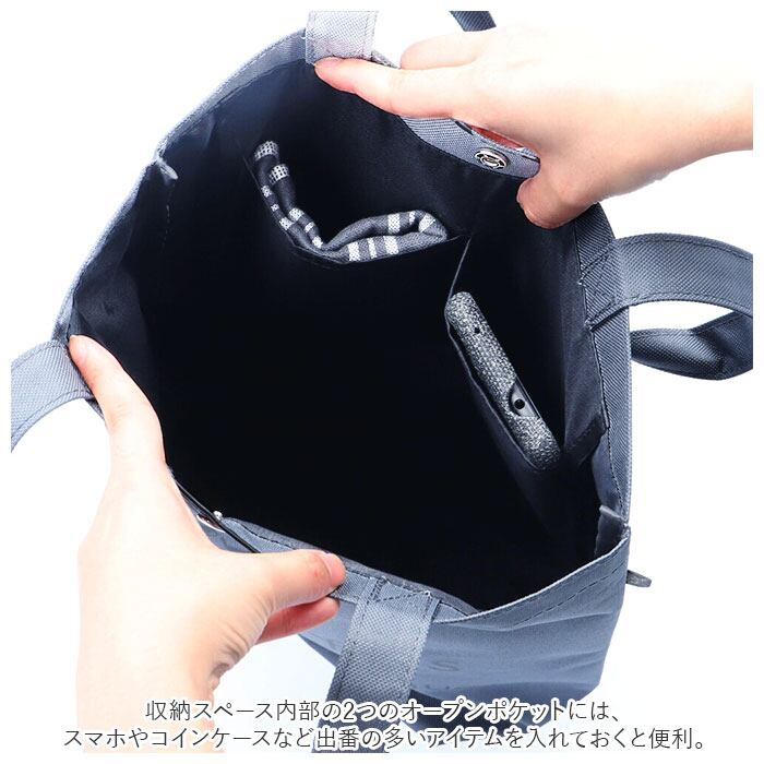 ・ランチボックスやウォーターボトルも収納できる程よくマチ幅のある設計なので、普段使い用のトートとしてはもちろん、通勤・通学用のサブバッグにもオススメ。