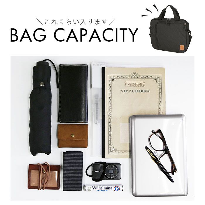 ・落ち着いた杢調生地に「SHELTER」のロゴパッチが映えるスタイリッシュな外観で、ビジネスシーンにもマッチ。もちろん書類の持ち運びに便利なA4対応サイズ。