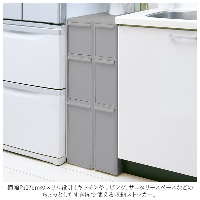・横幅約17cmのスリム設計!キッチンやリビング、サニタリースペースなどのちょっとしたすき間で使える収納ストッカー。