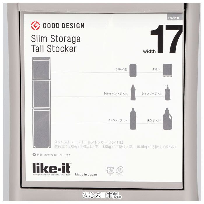 隙間収納 17cm 通販 すきま収納 収納ケース 引き出し 奥行46.5 キッチンラック スリム キッチン 収納 ストッカー リビング 冷蔵庫横 シンク横 洗面所 ランドリー 洗濯機横 ライクイット like-it TS-111L スリムストレージ トールストッカー キッチン隙間収納 キッチン収納