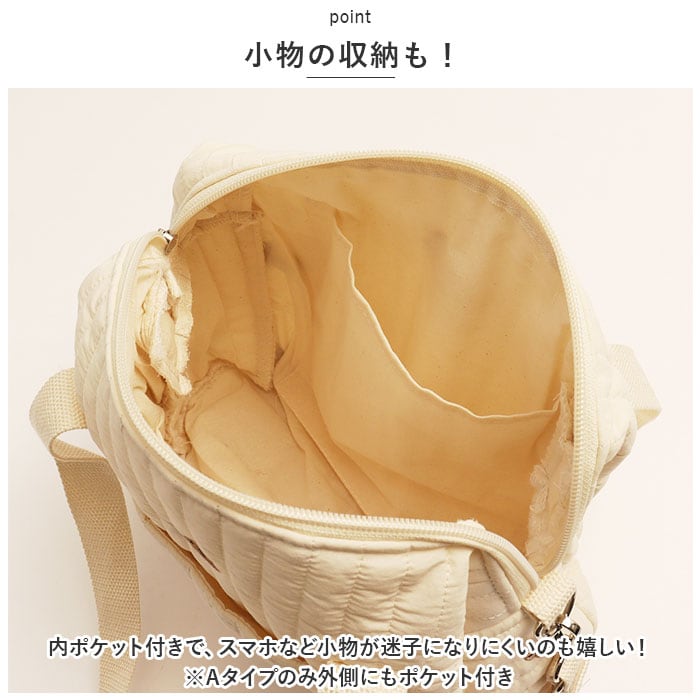 ・内ポケット付きで、スマホなど小物が迷子になりにくいのも嬉しい!(※Aタイプのみ外側にもポケット付き)