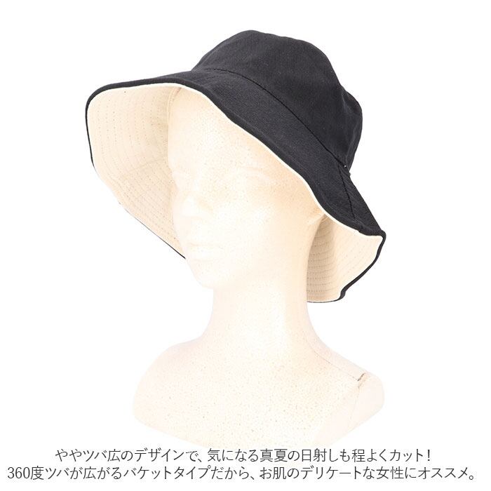 ・ややツバ広のデザインで、気になる真夏の日射しも程よくカット!360度ツバが広がるバケットタイプだから、お肌のデリケートな女性にオススメ。