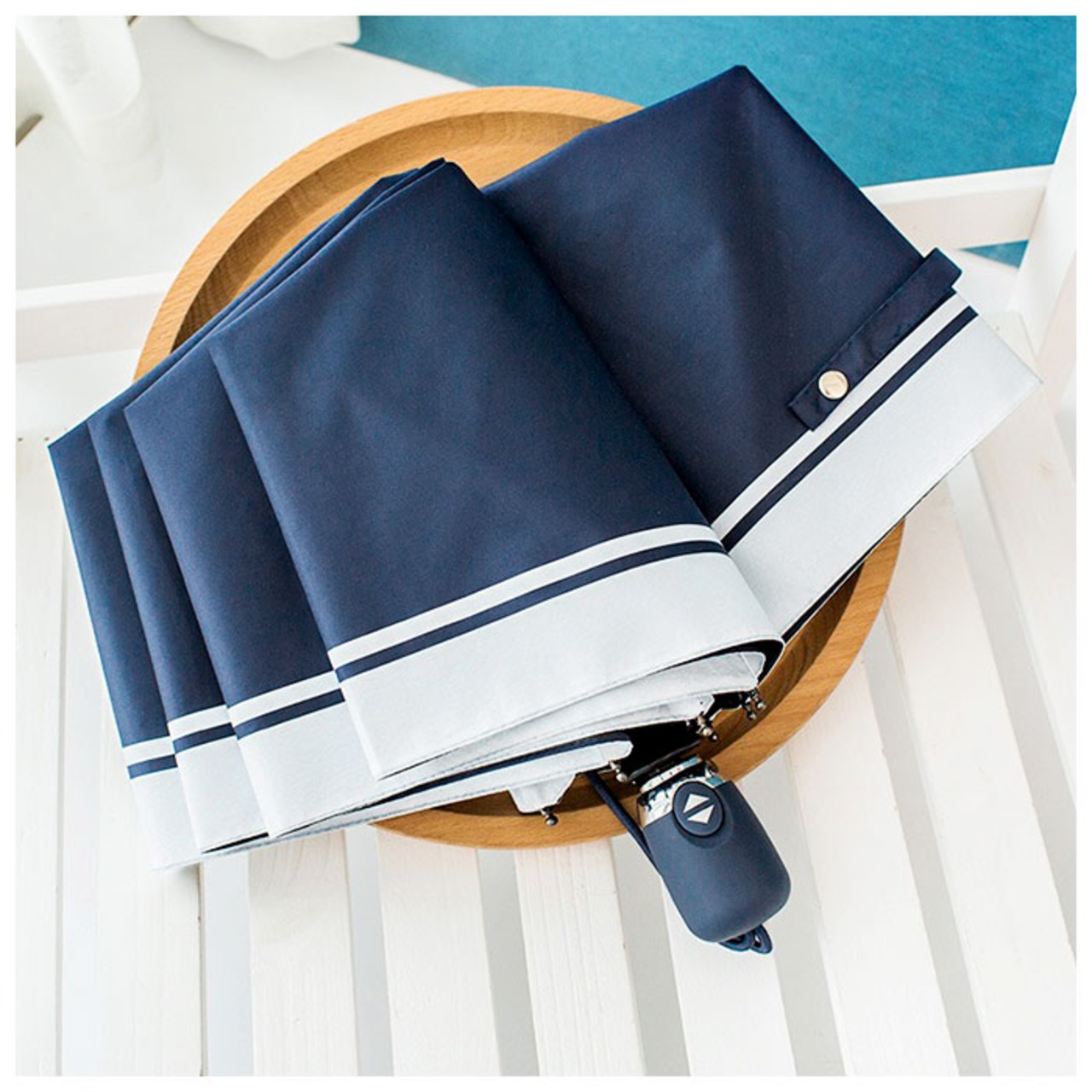 ・傘生地をまとめるバンドは、パチンと留めるスナップボタン式。