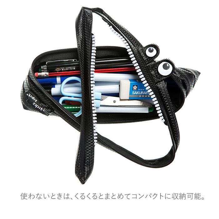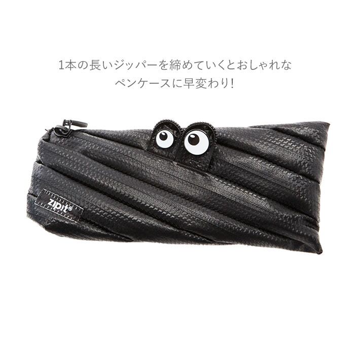 ・1本の長いジッパーを締めていくとおしゃれなペンケースに早変わり!
