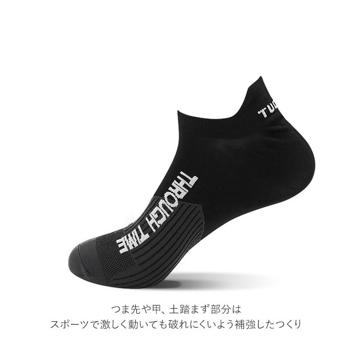 ・つま先や甲、土踏まず部分はスポーツで激しく動いても破れにくいよう補強したつくり。