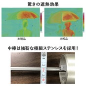 ・遮光率99.99%以上!内側にブラックコーティングが施されており、太陽光をバッチリ遮る。UVカット率も99.99%以上なので、紫外線を徹底的にブロック。