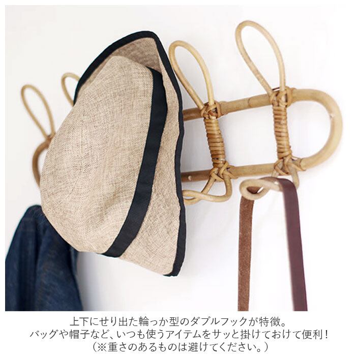 ・バッグや帽子など、いつも使うアイテムをサッと掛けておけて便利!(※重さのあるものは避けてください。)