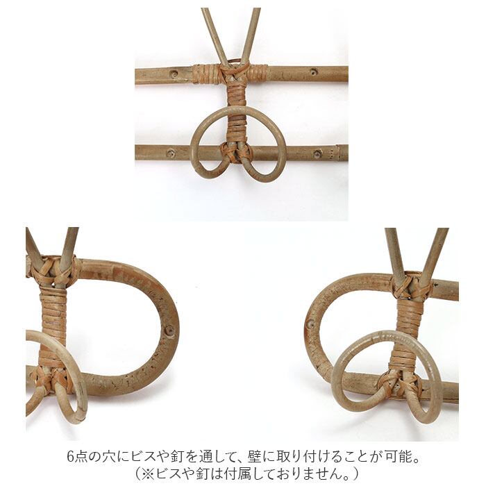 ・6点の穴にビスや釘を通して、壁に取り付けることが可能。収納スペースが限られた玄関、ワンルームのお部屋にもぴったり。(※ビスや釘は付属しておりません。)
