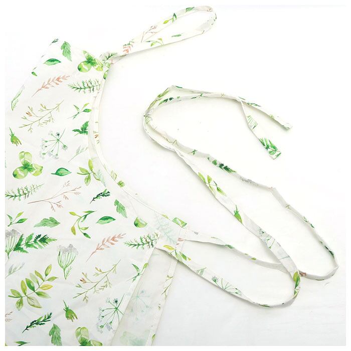 ・ボタニカルモチーフがプリントされた、優しい雰囲気のエプロンが登場。