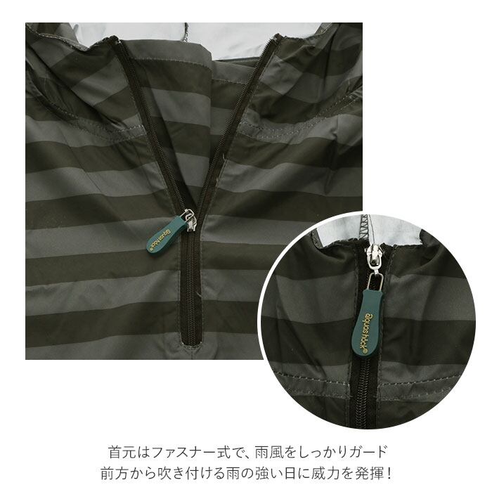 ・首元はファスナー式で、雨風をしっかりガード。