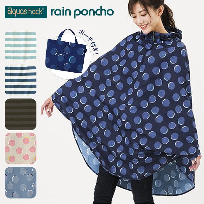 レインポンチョ レディース 通販 はっ水 撥水 @quas hack アクアスハック 超撥水 軽量 軽い aquas hack 収納袋付き おしゃれ 大人 かわいい シンプル 通勤 通学 自転車 フェス レインウェア 雨具 レイングッズ レインウエア