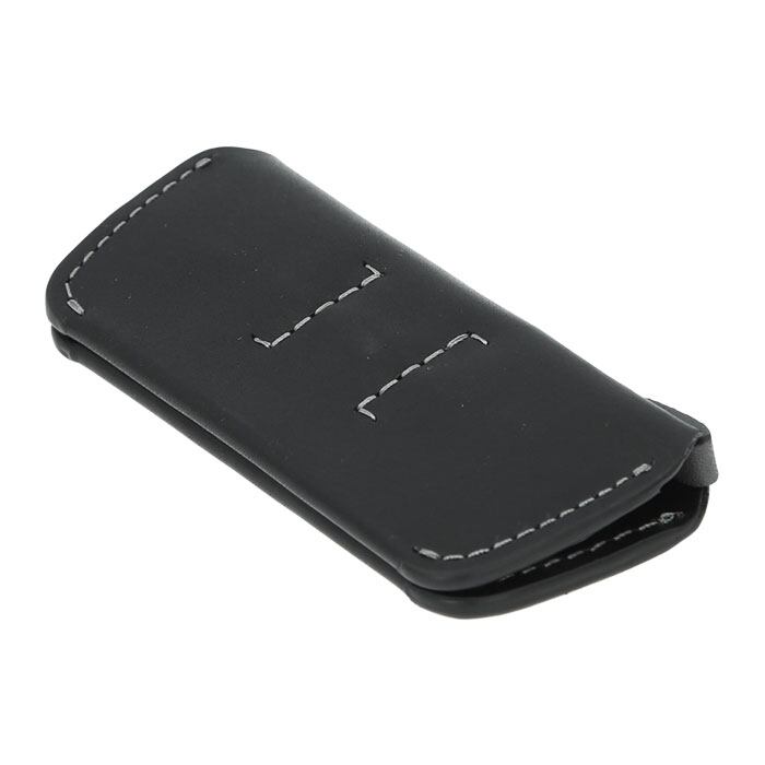 ・カバーの端に車のキーやキーチェーンが付けられるレザータブ付き。
