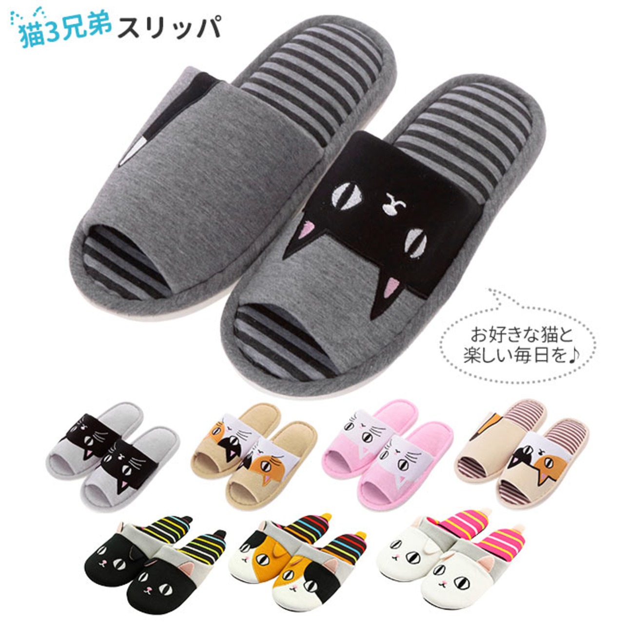 スリッパ 室内用 おしゃれ 通販 かわいい 来客用 ルームシューズ 新生活 プレゼント ネコ顔 ギフト プレゼント ソフトタイプ キャット にゃんこ 猫グッズ インテリア 猫3兄弟 三毛猫 ミケネコ 黒ネコ 黒猫 白猫 白ねこ 雑