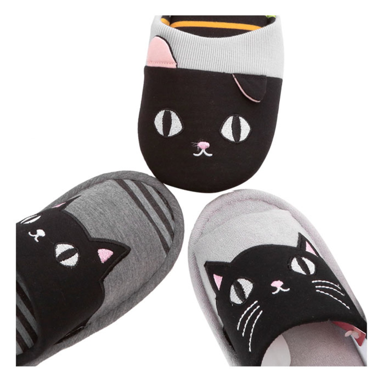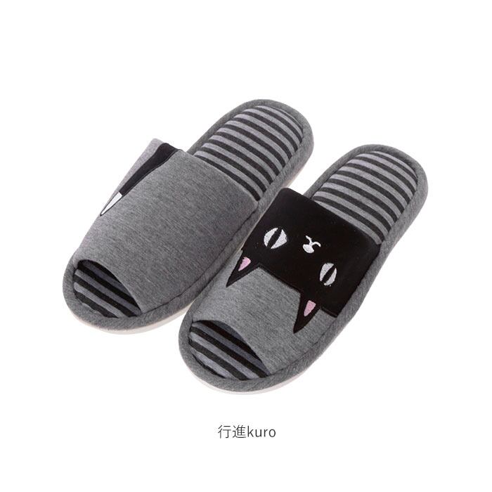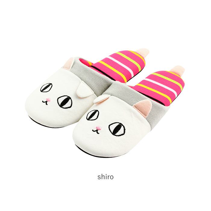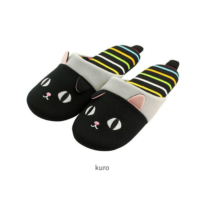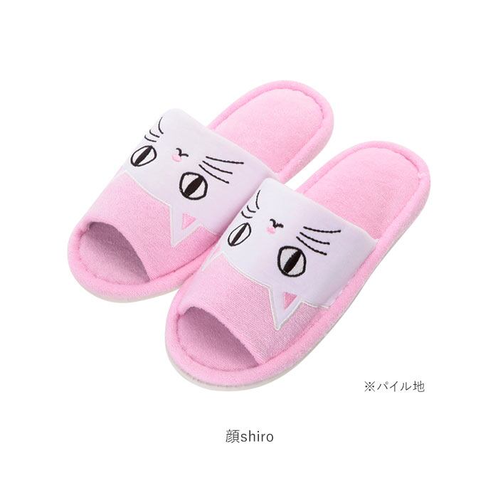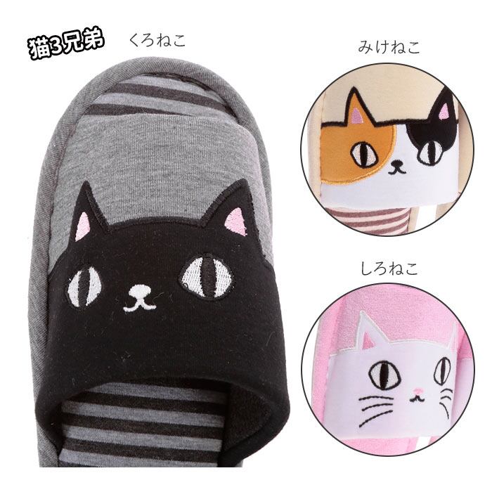 ・くろねこ、みけねこ、しろねこの可愛い猫の顔が描かれた“猫3兄弟スリッパ”
