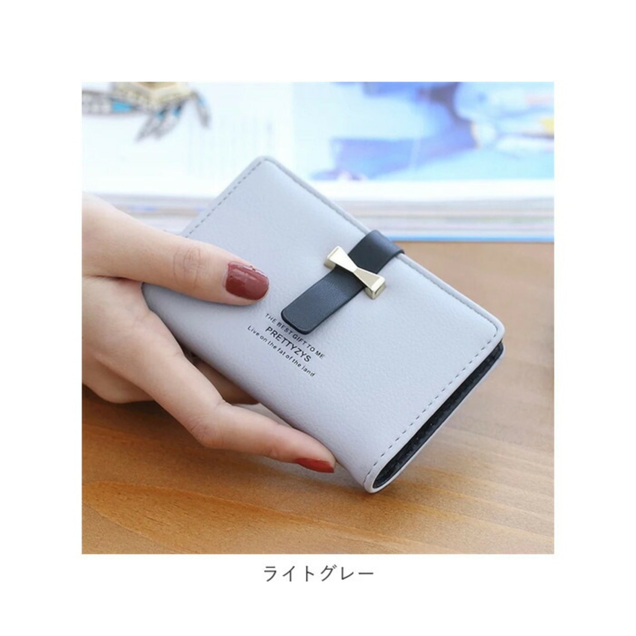 ・くすみカラーにゴールドカラーのリボンモチーフが輝くキレイめなデザイン。