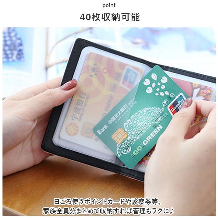 ・半透明のクリアポケットでカードは40枚収納可能。日ごろ使うポイントカードや診察券等、家族全員分まとめて収納すれば管理もラクに♪