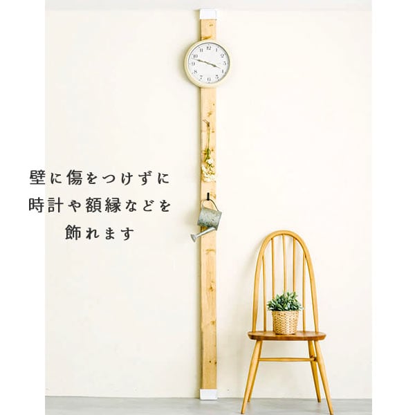 ■市販のツーバイフォー材(断面約38mm×89mm)を使用し、お好みのフックやネジ等で時計・額縁・カレンダー等を取り付けることが出来ます。