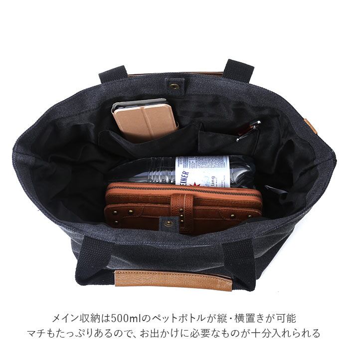 ・メイン収納は500mlのペットボトルが縦・横置きが可能。マチもたっぷりあるので、お出かけに必要なお財布・スマホ・ポーチ等が十分入れられるサイズ感。さらにオープンポケット×2・ファスナーポケット×1を配置。