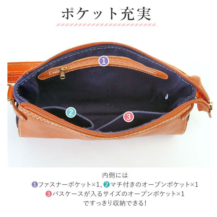 ・メイン収納には長財布やポーチなどの必需品が入るサイズなので、ちょっとしたお出かけにも最適。