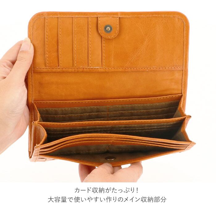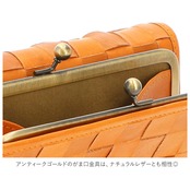 ・小銭入れはがま口で大きく開くので、小銭の出し入れがしやすい。アンティークゴールドのがま口金具は、ナチュラルレザーとも相性◎