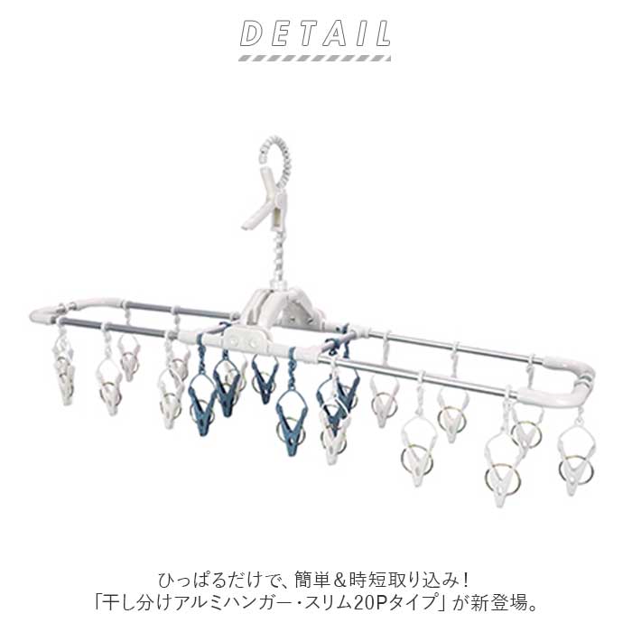 干し分け アルミハンガー 20P スリム 通販 引っ張るだけ ピンチハンガー 洗濯ハンガー 室内干し ピンチ ハンガー 時短 取込み かんたん 室内 物干し 洗濯 シンプル ジーンズも干せる 鴨居干し