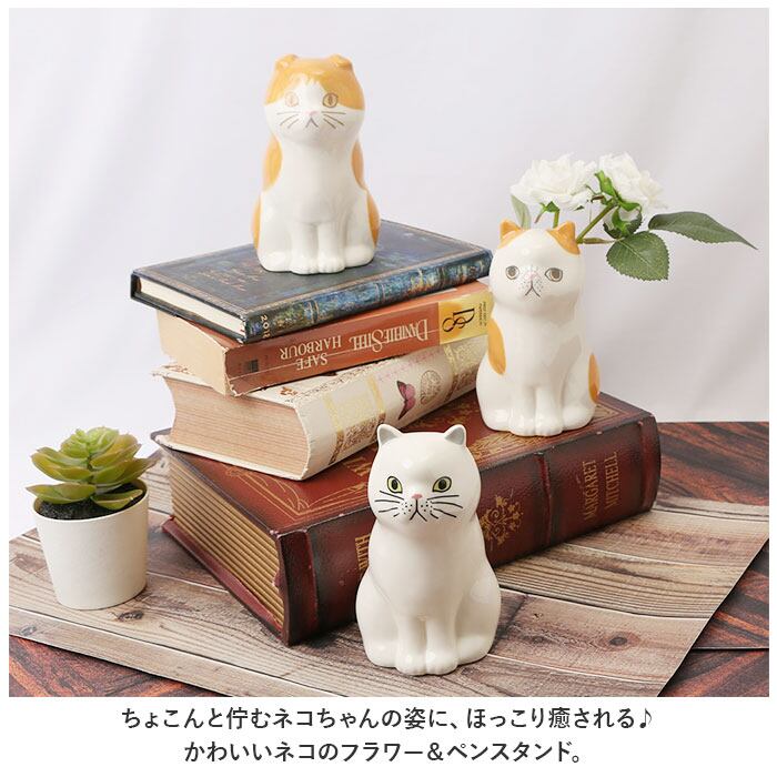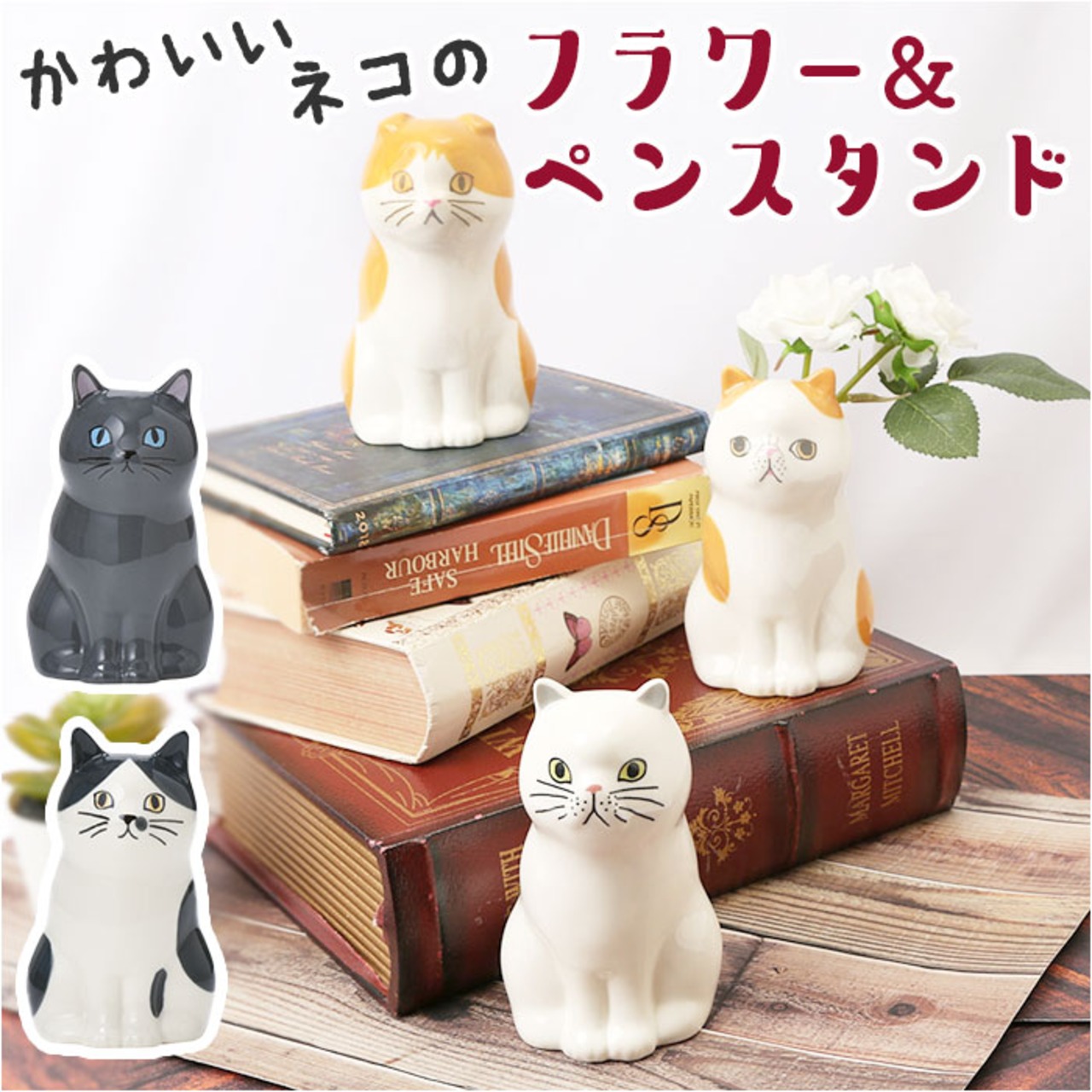 ・ちょこんと佇むネコちゃんの姿に、ほっこり癒される♪かわいいネコのフラワー&ペンスタンド。