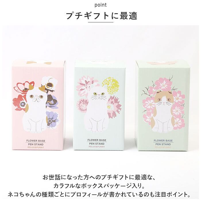 ・お世話になった方へのプチギフトに最適な、カラフルなボックスパッケージ入り。ネコちゃんの種類ごとにプロフィールが書かれているのも注目ポイント。