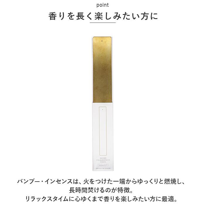 ・バンブー・インセンスの灰は、短冊状の真鍮プレートの上に落ちるので、テーブルやキャビネットの天板を汚す心配がなく、片付けも手間いらず。