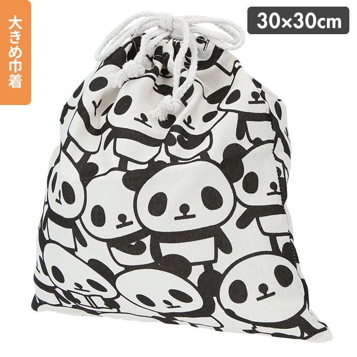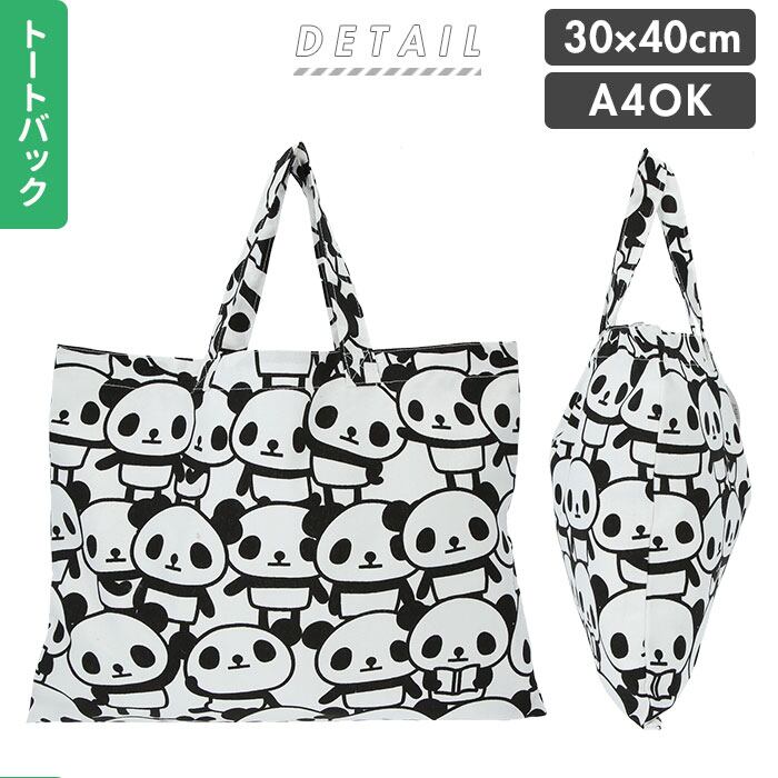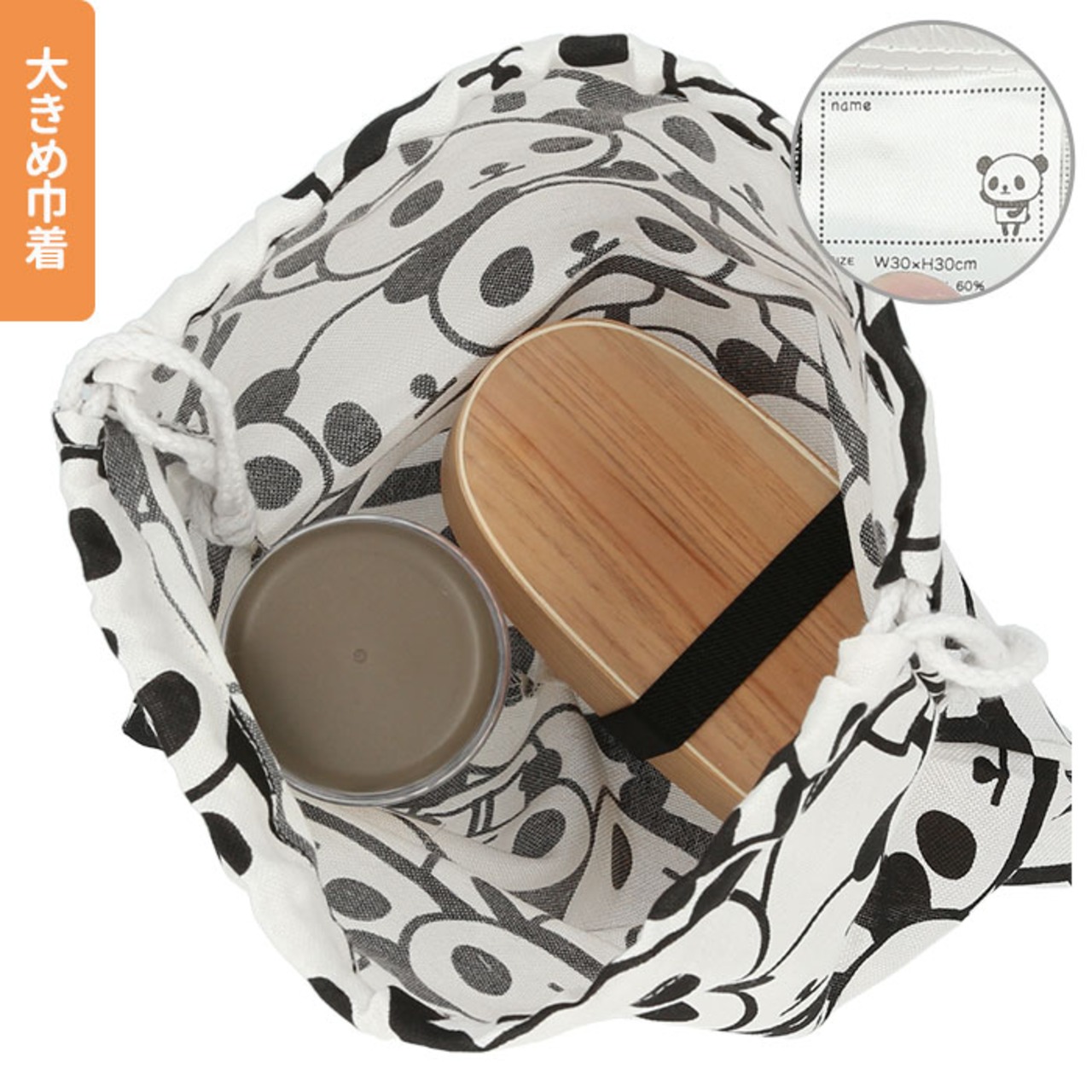 ・パンダのプリントデザインが可愛い♪トートバッグ、ランチ巾着、大きめ巾着、ランチクロスの4点セット。