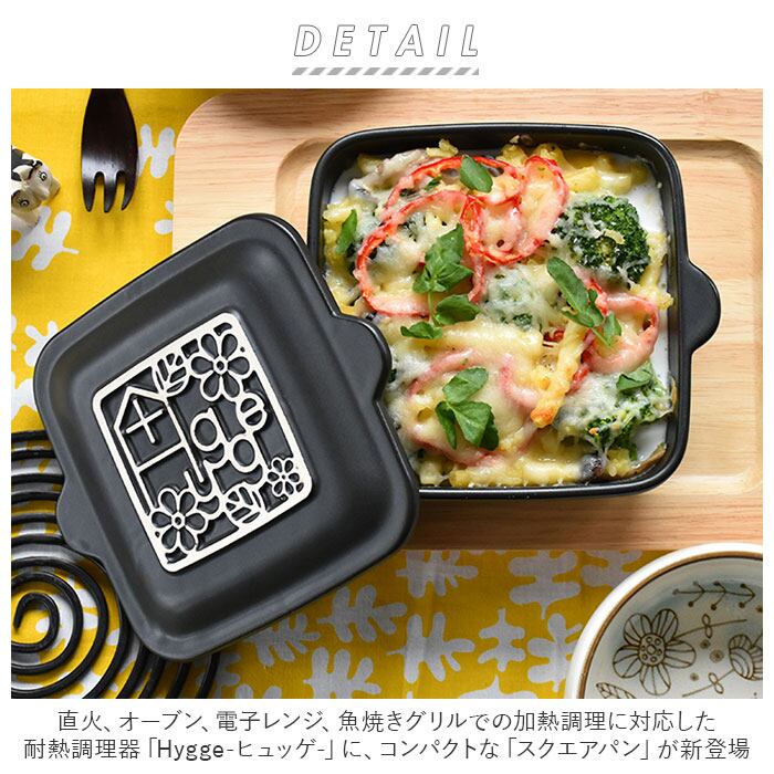 ・直火、オーブン、電子レンジ、魚焼きグリルでの加熱調理に対応した耐熱調理器「Hygge-ヒュッゲ-」に、コンパクトな「スクエアパン」が新登場。