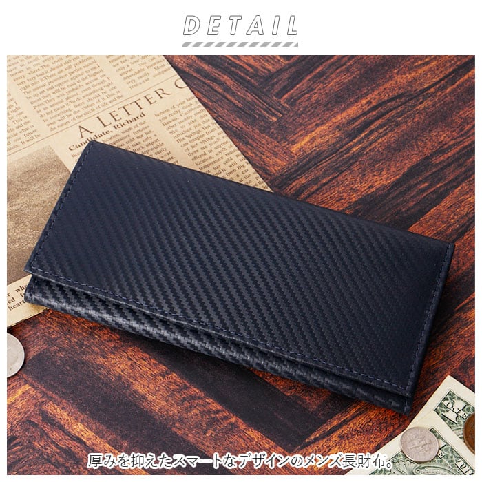 ・厚みを抑えたスマートなデザインのメンズ長財布。